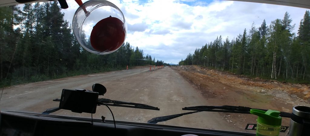 Jour 54 : Aujourd’hui c’est encore une journée tranquille. On fait de nouveau près de 500 km et on croise encore des rennes ! On commence à s’y habituer ! Quelques travaux sur la route qui se transforme d’un coup en un chemin de terre pendant plusieurs kilomètres…