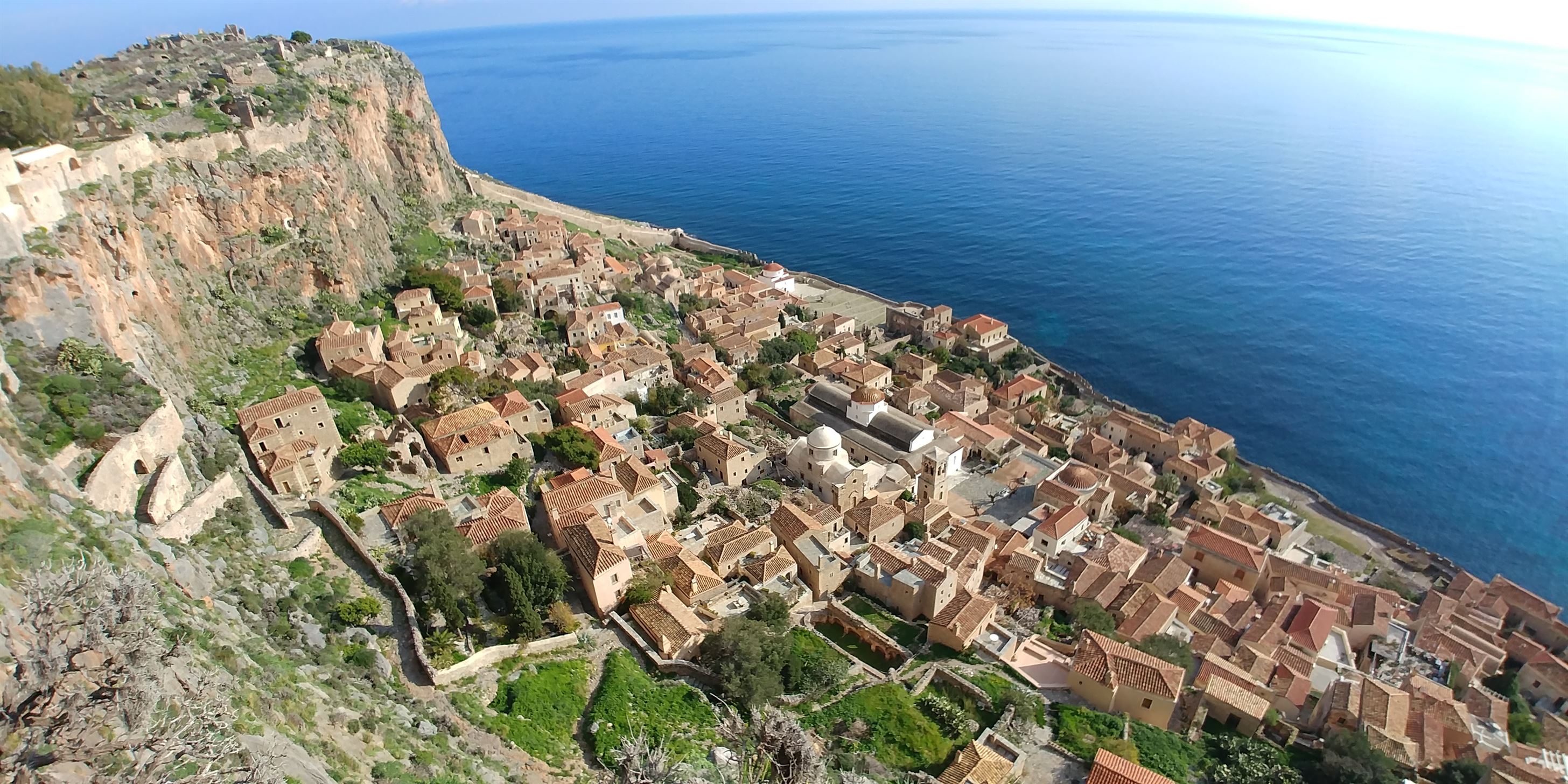 Jour 194 : Aujourd’hui, on rejoint le village fortifié de Monemvasia, notre coup de cœur. Au premier abord cette presque-île au Sud de Péloponnèse apparaît comme un grand rocher sauvage mais en franchissant la porte fortifiée, on découvre des petites ruelles accueillant de nombreuses chambres d’hôtes, des restaurants et des habitations modestes des locaux.