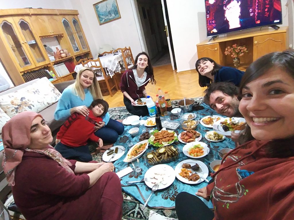 Après un thé dans le salon, on nous invite à se poser dans la cuisine et on nous sert des délicieuses pizzas turques, des « lahmacuns ». Mais il y a un mal-entendu ! On a accepté de venir les rejoindre pour le dîner mais en fait ils ont déjà mangé dans le parc ! Du coup on est les seuls servis. La famille s’installe sur le canapé à côté de nous. Là on est un peu gênés, on a l’impression de s’incruster vraiment. Mais on dirait qu’ils sont très contents de nous accueillir, on nous parle même du père de la famille qui est malheureusement décédé… Bizarrement avec un peu de volonté on arrive à se comprendre et avoir une discussion ! Et pour finir, on prend une douche chez eux, eh oui on nous a même conduit à la salle de bain avant qu’on puisse refuser. Par contre mes maîtres restent fermes et insistent pour dormir dans le Campi avec moi ! On revient dormir dans le parc, à 30 minutes de chez eux. Mais on a vécu une expérience inoubliable et on espère qu’un jour on pourra les accueillir. En effet, beaucoup de gens ici souhaitent voyager mais ils manquent de moyens financiers car l’Europe est très chère pour eux. Sachant cela, ils n’hésitent cependant pas à nous accueillir comme des rois !