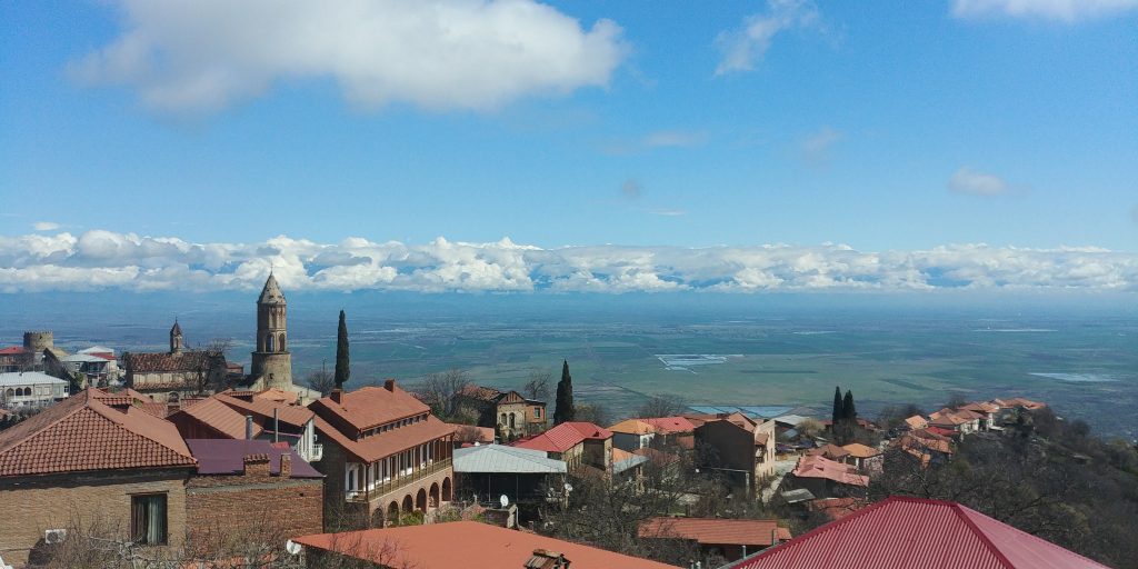 Jour 301 : On s’avance donc vers la frontière avec l’Azerbaïdjan. Sur notre chemin, on visite la ville de Sighnaghi située dans les hauteurs avec la vue sur les montagnes séparant la Géorgie de la Russie.