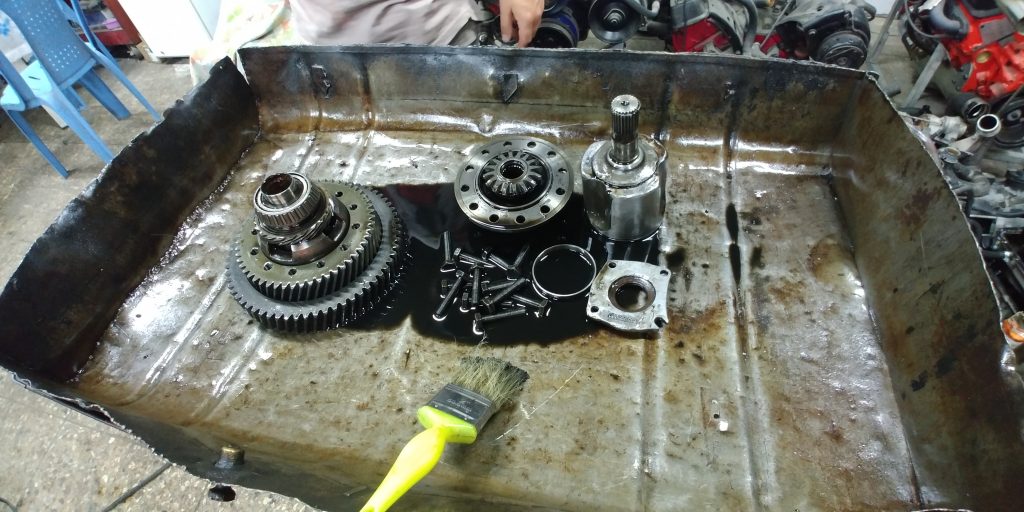 Campi a eu une cure de jeunesse : changement de 3 courroies et surtout réparation du différentiel de la boîte de vitesse dont l’huile coulait depuis le début du voyage. Ça commençait à devenir critique, on devait mettre de l’huile tous les jours. Campi est maintenant dans un meilleur état qu’à l’achat !